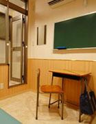 机&椅子&黒板を完備した教室風のプレイルームは、シャワー完備の完全個室。もちろん空調も整っており夏は涼しく、冬は暖かいです。